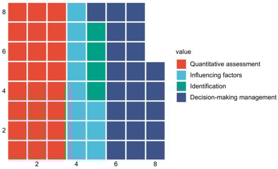 This phase involved extracting and categorizing key variables from the 61 selected scientific publications, a process essential for synthesizing knowledge and drawing conclusions. As a consequence of persistent resource exploitation driven by economic development and population growth, ecological degradation has resulted in reductions in both the extent of ecosystems and the quality of their ecological features. This, in turn, has led to a progressively constrained capacity for providing ES [79,80,81,82]. Current research on agroforestry ecological assets tends to focus more on the quantitative valuation of these assets rather than on their stock (both in quantity and quality) and the resultant capacity to deliver ES [32]. Therefore, we argue that there is a need to reorganize the stock of agroforestry ecological assets to enhance both their quality and quantity, aiming to alleviate the limited supply of agroforestry ecosystem services (AES). Based on AEA research, we identified four main areas of interest: identification, quantitative assessment, decision management, and impact factors. These areas are interrelated and collectively influence the sustainability of ecological assets. The integration of these aspects—identification, quantitative assessment, impact analysis, and decision management—is pivotal for the sustainability of ecosystem assets. Accurate identification is central to ecological asset management, providing a foundation for further assessment and management. Through quantitative assessment, the non-market value of ecosystems is transformed into measurable data, aiding policymakers and managers in developing effective strategies. Moreover, the decision making and management aspect is crucial for the sustainable utilization of ecological assets. A comprehensive understanding of the factors influencing adversely affect these assets. To clarify the results of these analyses, we present them separately in Section 3.