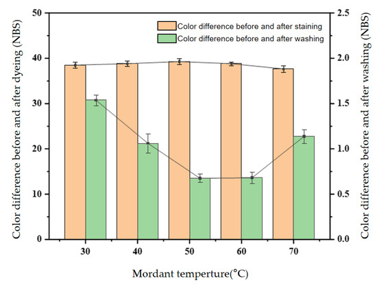 Effect of mordant temperature on color difference and colorfastness to washing of poplar.