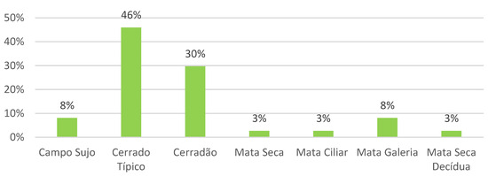 Distribution of the total number of articles in the systematic review by types of phytophysiognomies.