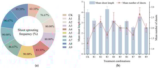 Table 2). A daily observation of the explants’ development was conducted. After a 30-day culture period, the shoot sprouting frequency (%), the average number of shoots per explant, and average shoot length (mm) were measured and counted [