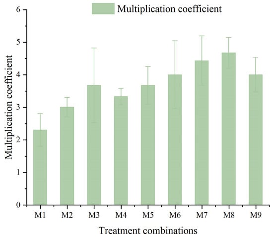 Table 3). The proliferation coefficients and growth status of adventitious shoots were observed and counted after culturing for 30 d [