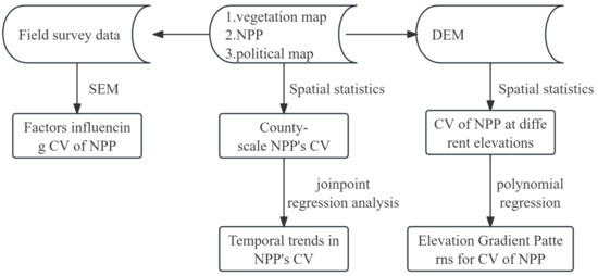 Methodology flowchart. CV is coefficient of variation. NPP is net primary productivity. DEM is a digital elevation model.