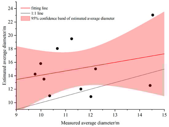 Figure 10 compares the extracted and measured values of the average diameter at breast height. It can be seen that in nine plots, the estimated average diameter was overestimated, while in two plots, it was underestimated.