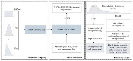 Sensitivity analyses of the physiological and ecological parameters of BIOME-BGC were conducted using the Morris method and EFAST to qualitatively and quantitatively analyze the effects of the input parameters on NEP.