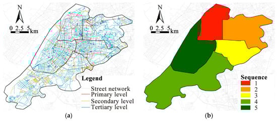 Identifying the street levels and urgent sequence of street green space construction for enhancing urban greening efforts. (a) The street levels for enhancing urban greening efforts; (b) the urgent sequence of street green space construction.
