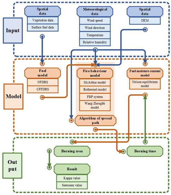 The related equations are listed in the research of Rothermel [26], and only the basic model form is listed in this study.