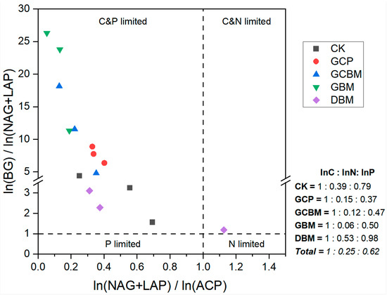 - Sinsabaugh, R.L.; Shah, J.J.F. Ecoenzymatic Stoichiometry and Ecological Theory. Annu. Rev. Ecol. Evol. Syst. 2012, 43, 313–343. [Google Scholar] [CrossRef]