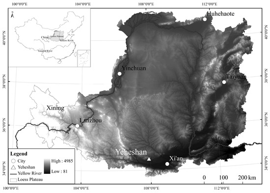 The study was conducted from 2015 to 2016 in the Yeheshan catchment, Fufeng County (34°33′ N, 107°54′ E, 1090 m a.s.l, Figure 1) in Shaanxi Province on the southern Chinese Loess Plateau. The average annual precipitation of the area is 580 mm with significant seasonal variations. Approximately 80% of the precipitation falls between May and October. The annual mean air temperature is 12.7 °C. The soil is silt loam according to the USDA (United States Department of Agriculture) classification, with average values of sand, 5.8%, silt, 73.4%, and clay, 20.9%.