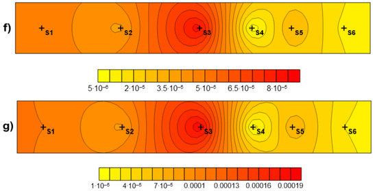 Maps of spatial distribution of (a) average PAH contamination; (b) TEQ value; (c) RQ(NCs) (d) RQ(MPCs); (e) BaP equivalent; (f) ILCR adult; (g) ILCR children.