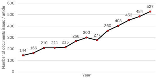 Variations in the amount of published literature serve as significant markers of research activity in particular domains [21,22]. From 2009–2021, statistics as of 20 March 2022 were unable to represent the entire year of data; hence, a total of 44 articles published in 2022 were omitted. Research publications on forest ecological benefit compensation showed a continuously increasing trend (Figure 1), indicating that an increased number of scholars are involved in this field of research, that it is rapidly developing, and that it has future potential.