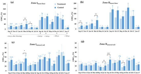 3.2. Forest Floor and Mineral Soil Moisture