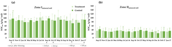 3.3.1. Thinning Effects on Selected Soil Carbon Fractions: Soil Organic Carbon (SOC), Water-Soluble Organic Carbon (WSOC) and Microbial Biomass Carbon (MBC)