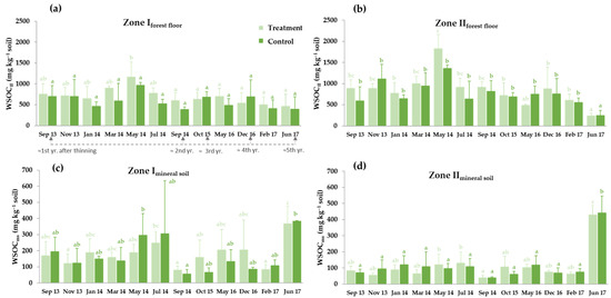 - Lull, C.; Bautista, I.; Lidón, A.; del Campo, A.D.; González-Sanchis, M.; García-Prats, A. Temporal effects of thinning on soil organic carbon pools, basal respiration and enzyme activities in a Mediterranean Holm oak forest. For. Ecol. Manag. 2020, 464, 118088. [Google Scholar] [CrossRef]