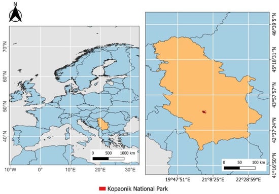 - MEP (Ministry of Environmental Protection); PE (Public Enterprise) National Park ‘’Kopaonik”. National Park Kopaonik Management Program for 2021, p. 12. 2020. Available online: https://npkopaonik.rs/wp-content/uploads/2021/08/Program-upravljanja-2021..pdf (accessed on 15 January 2024). (In Serbian).