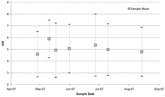 Field Clegg impact values (CIVs) throughout summer sampling period.