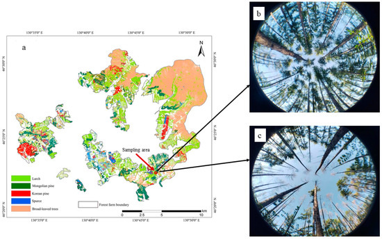 The experimental sample site was located in Mengjiagang forest (130°32′42″–130°52′36″ E, 46°20′16″–46°30′50″), Jiamusi city, Heilongjiang province, which is characterized by an east Asian continental monsoon climate, with an average annual temperature of 2.7 °C, average annual precipitation of 550 mm, average annual sunshine hours of 1955 h, and an average annual frost-free period of 120 d. The site is located in the western foothills of Wanda mountain, with an average elevation of 250 m. The soil in the L. olgensis plantation cultivation area is mostly dark brown loam, and it is a plantation base with larch as the main business. At present, it is a secondary deciduous broad-leaved mixed forest dominated by Betula dahurica, Populus davidiana, Betula platyphylla and Pinus koraiensis, with Pinus sylvestris var. mogolica- and Larix olgensis-dominated planted conifer forests [39].