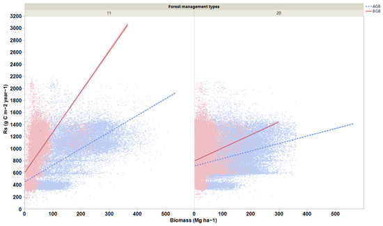 The Relationships between Biomass and Soil Respiration across Different Forest Management Practices