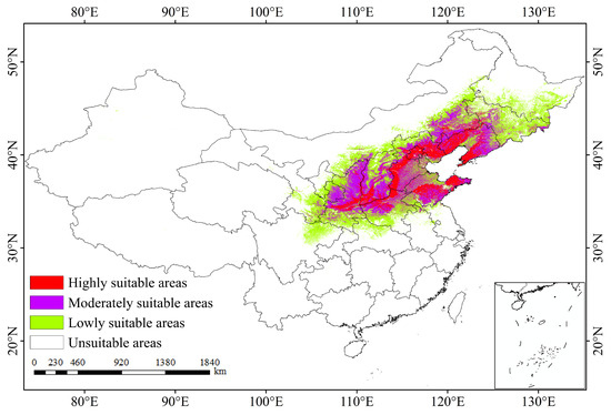 Chicago/Turabian StyleLiu, Yitong, Yuqing Wang, Hui Guo, Di Wu, Sha Wu, Xuebin Xin, and Shunxiang Pei. 2024. "Changes in Potentially Suitable Areas for Fruit Utilization of Acer truncatum in China under Climate Change" Forests 15, no. 4: 713. https://doi.org/10.3390/f15040713