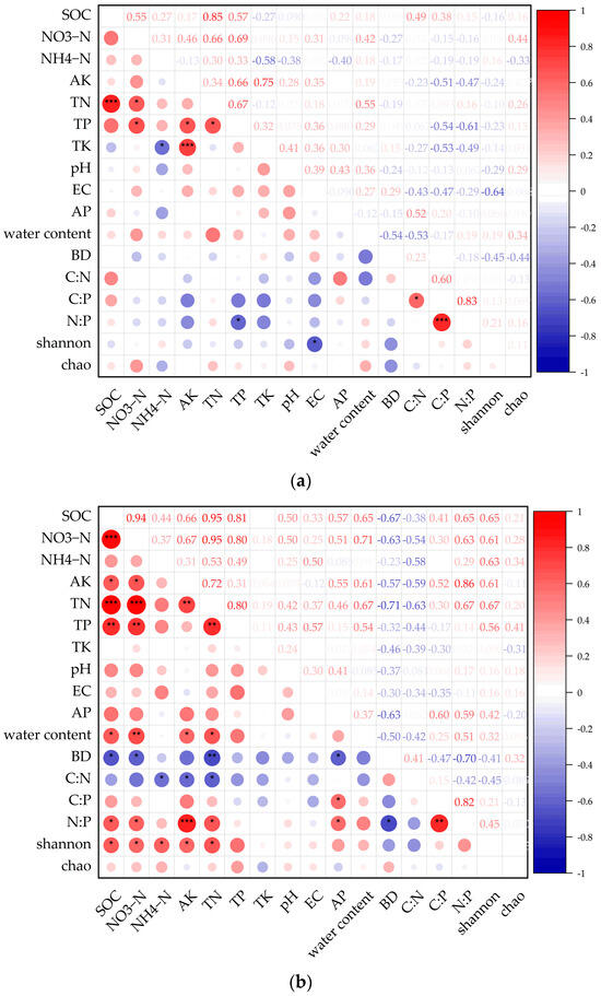 3.4. Relationship between Soil Physicochemical Properties and Bacterial Alpha Diversity