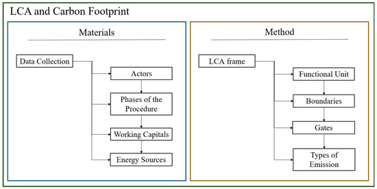 The carbon footprint is an indicator for measuring the total CO2 emissions generated by human activity to obtain goods and services and to develop activities. Life Cycle Assessment (LCA) is an important and fundamental methodology for quantifying the environmental impacts arising from the production of goods or the provision of services. It is largely used as tool for combatting climate change [29]. This study combines the carbon footprint and LCA methodologies to quantify the CO2 emissions related to one administrative procedure for the management of a forest in the Umbria region. Data were gathered between 2022 and 2023 from regional legislative documents, including administrative procedures for forest management, as well as their relative forms and involved actors, through questionnaires and interviews with forestry professionals and relevant offices. The emissions calculation method is defined in accordance with the standards ISO 14067 [30]. The methodology used is shown in Figure 1.