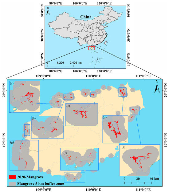 - Fang, F.; Li, Z.; Gui, H. Investigation and Research on Current Situation of Mangrove in Hainan. Trop. For. 2022, 50, 42–49. [Google Scholar]