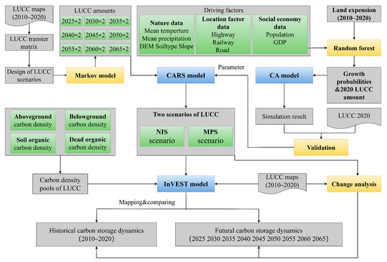 - Liu, Q.; Yang, D.; Cao, L.; Anderson, B. Assessment and prediction of carbon storage based on land use/land cover dynamics in the tropics: A case study of hainan island, China. Land 2022, 11, 244. [Google Scholar] [CrossRef]