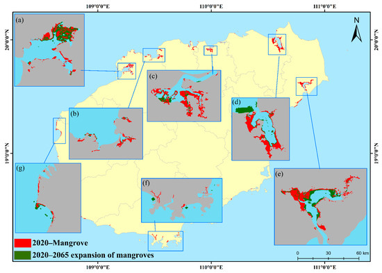 3.2. Multiscenario Mangrove Distribution