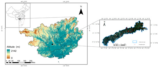 40]. The research objectives of this paper are as follows: (1) a high-precision estimation method of eucalyptus plantation stock based on airborne point clouds combined with Landsat 8 images was proposed. This method aims to enhance the accuracy of eucalyptus stock estimation beyond the capabilities of existing techniques. (2) The estimation parameters and non-parametric models of eucalyptus plantation stock at the forest farm scale were established. These models are expected to provide a robust framework for accurate stock estimation, facilitating better forest management and resource allocation. (3) A scheme for estimating the stock of eucalyptus plantation with multi-source data is provided. This scheme is intended to leverage the complementary strengths of various data sources, thereby improving the reliability and precision of the stock estimation process.
