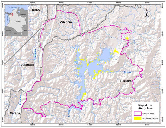 The study area includes 90 villages within the municipalities of Tierralta and Valencia in the department of Córdoba and within Turbo, Apartadó, Carepa, and San Pedro de Urabá in the department of Antioquia. In 1996, the construction of the Urra hydropower facility, which collects the water of the Sinú river, began in the region, and the operations began in 2000 (Figure 1).