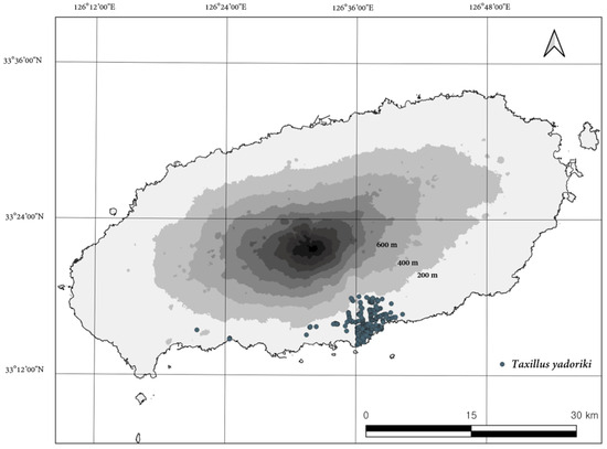 We believe that our island-wide field surveys have identified the majority of T. yadoriki distributions on Jeju Island, but there may still be residual potential T. yadoriki distributions. Therefore, we used the maximum entry model algorithm, which allows effective modeling even with occurrence data [33,34].