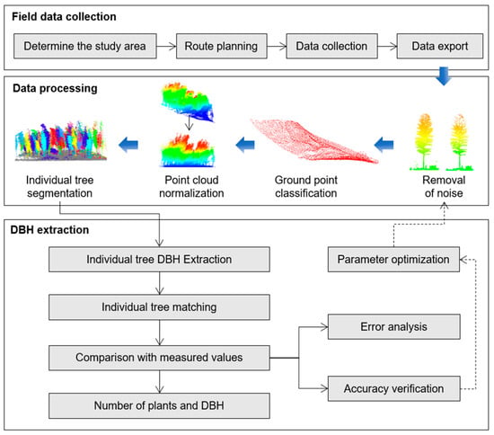 Framework for Moso bamboo DBH extraction.