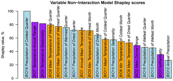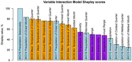 2.5. Ranking of Bioclimatic Variables Using Shapley Values