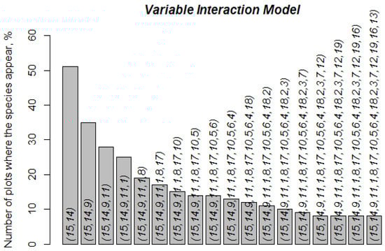 Figure A1. In the dataset: Plot ID-identificator of a forest plot; Clim_var_1, Clim_var_2 and Clim_var_3-climatic characteristics (having binned values); Presence-indicator of a tree species presence (‘1’—if present; ‘0’—if not).