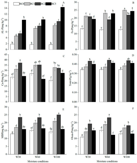 Effects of Biochar on Soil Inorganic Phosphorus Components, Available Phosphorus, Enzyme Activities Related to Phosphorus Cycle, Microbial Functional Genes, and Seedling Growth of Populus euphratica under Different Water Conditions
