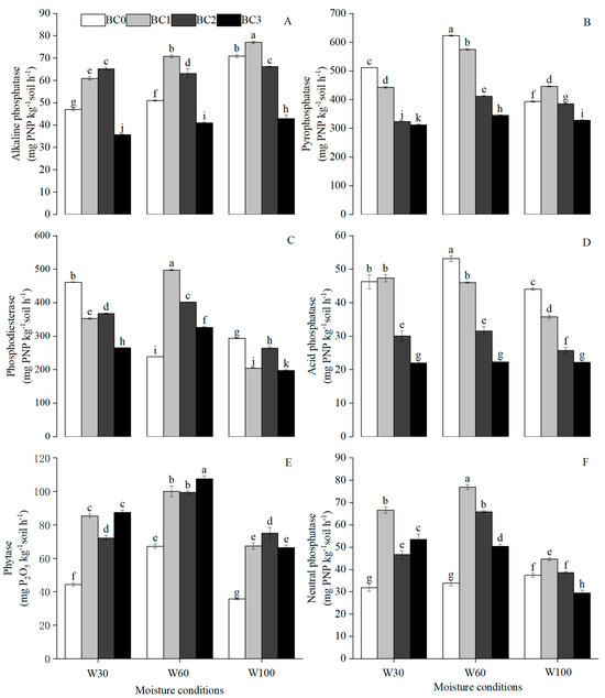 - Khadem, A.; Raiesi, F. Response of Soil Alkaline Phosphatase to Biochar Amendments: Changes in Kinetic and Thermodynamic Characteristics. Geoderma 2019, 337, 44–54. [Google Scholar] [CrossRef]