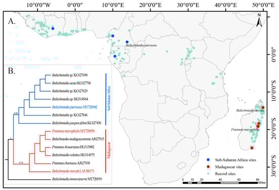 4.1. Phylogenetic Analysis of Beilschmiediineae from Africa
