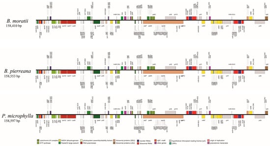 - Wicke, S.; Schneeweiss, G.M.; dePamphilis, C.W.; Muller, K.F.; Quandt, D. The evolution of the plastid chromosome in land plants: Gene content, gene order, gene function. Plant Mol. Biol. 2011, 76, 273–297. [Google Scholar] [CrossRef]