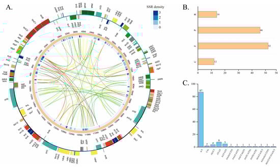 2.4. Analysis of Repeats and Simple Sequence Repeats (SSR)