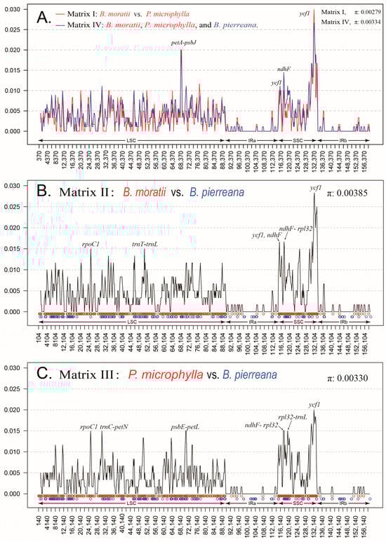 2.5. Mutation Events Detection and Sliding Window Analysis of the Plastomes