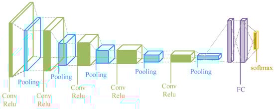 The classic deep learning structure consists of a convolutional layer, a pooling layer, and a fully connected layer, and the activation function (commonly used as Relu) is typically used after the convolutional layer. The basic structure is shown in Figure 7, the convolutional layer and the pooling layer are used to extract TS features, and the fully connected layer is used to classify TS. The whole classification process is an automatic process, which is an end-to-end process, only the corresponding data of the input layer need to be given, and features are automatically extracted from the network. It is more time-consuming and labor-intensive to create the samples (labels).