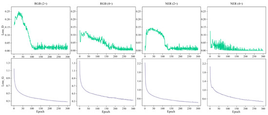 The study utilized experimental hardware consisting of a GeForce RTX 4090 GPU, an Intel Core i9-13900KF @ 3.00 GHz CPU for computational efficiency, and 64 GB of RAM. The code development utilized Python 3.9 as the programming language, PyCharm as the compiler, Pytorch framework for algorithm modeling and implementation, and Windows 10 as the operating system. CUDA11.2 and the related CuDNN were used to speed up model training. In addition, Table 4 provides further information regarding the training of the RMSRGAN model, where and represent the decay rates of the learning rate.