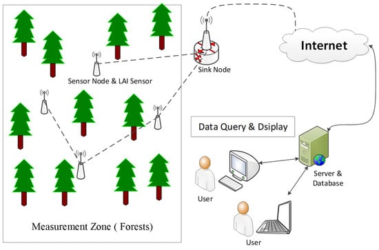 - Qu, Y.H.; Han, W.C.; Fu, L.Z.; Li, C.R.; Song, J.L.; Zhou, H.M.; Bo, Y.C.; Wang, J.D. LAINet—A wireless sensor network for coniferous forest leaf area index measurement: Design, algorithm and validation. Comput. Electron. Agric. 2014, 108, 200–208. [Google Scholar] [CrossRef]