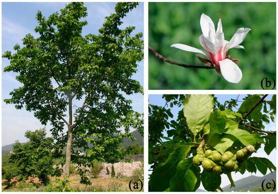 - Wang, Y.M. A study on Subgenus Yulania; Northwest Sci-Tech University of Agriculture and Forestry: Yangling, China, 2003. [Google Scholar]