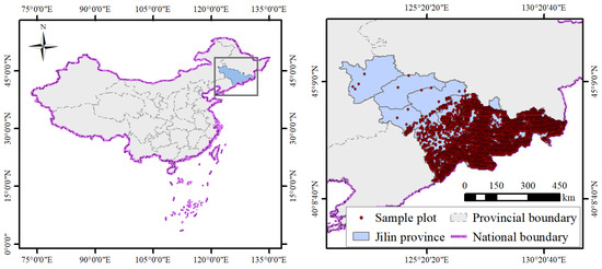 The distribution map of permanent sample plots used in the study in Jilin province.