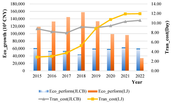 During the period of 2015–2022, the average total output values of the forestry industry of SOFEs of LJ Co., Ltd. exhibited an initial increase followed by a decline, as shown in Figure 2. The year 2018 marked a clear turning point, showing significant fluctuations in the output values of SOFEs during the reform and adjustment period. The SOFEs of JLCB Co., Ltd. showed relatively stable average total forestry industry output values, with a slight decrease in 2018. Overall, LJ Co., Ltd. had a much larger business scale compared to JLCB Co., Ltd., but by 2022, the average output value of JLCB Co., Ltd.’s enterprises had surpassed LJ Co., Ltd. Liu et al. [58] summarized the characteristics of economic development of SOFEs in the province of Inner Mongolia as significant differences in average annual growth rate, large fluctuations, and strong economic vulnerability. These characteristics are also observed in the selected regions in this study.