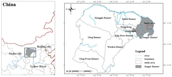 The Heidaigou open-pit coal mine in the study area is located in the central part of the Zhungeer coalfield (Figure 1) (111°13′–111°21′ E, 39°25′–39°49′ N), 120 km from Hohhot in the north, 135 km from Ordos in the west, and 225 km from the Pingshuo open-pit coal mine in the south. The mining area belongs to the temperate semi-arid continental climate, with an altitude of 1256 m, an average annual temperature of 7.2 °C, and an average annual rainfall of 408 mm. During the study period, the total rainfall from June to August accounted for more than 70% of the whole year. The frost-free period is between 125 and 150 days, and average sunshine hours is 3119.3 h. The dump of the mining area is a multi-stage platform comprising six dumps: tamping garlic ditch dump, east dump, north dump, west dump, inner dump, and east dump. The soil type is mainly loessial soil, which has a low nutrient content. The vegetation in this area belongs to a warm-temperate steppe zone. It consists mainly of low and sparse natural vegetation, and the coverage is less than 30%. The predominant species include Stipa bungeana, Thymus mongolicus, and Leymus secalinus. The artificial vegetation in the dump includes C. korshinskii, Sabina vulgaris, and Armeniaca sibirica, among many others (Table 1).