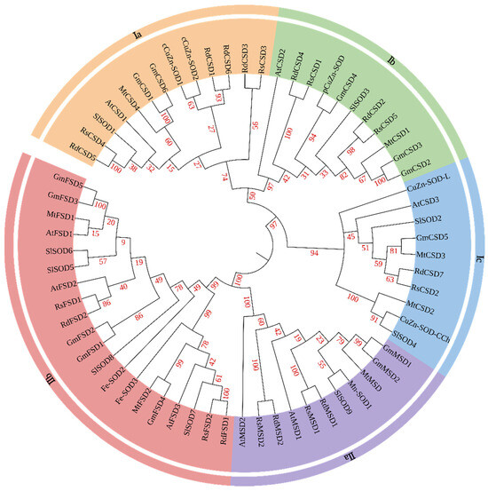 - Lu, W.; Duanmu, H.; Qiao, Y.; Jin, X.; Yu, Y.; Yu, L.; Chen, C. Genome-Wide Identification and Characterization of the Soybean SOD Family during Alkaline Stress. PeerJ 2020, 8, e8457. [Google Scholar] [CrossRef]