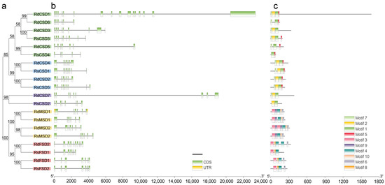3.3. Gene Structure and Motif Composition of the R. simsii and R. delavayi SOD Gene Families