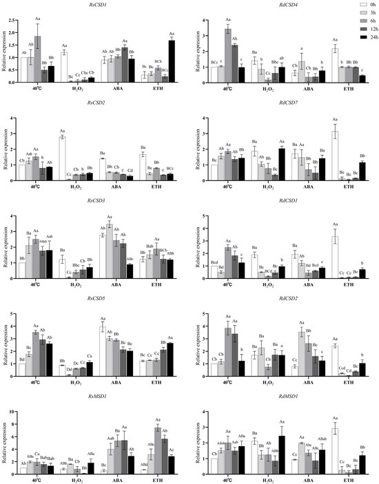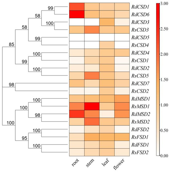 3.7. Tissue-Specific Expression Profiles of RsSODs and RdSODs