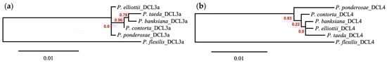Analysis of DICER-LIKE orthologs across six pine species revealed similar phylogenetic patterns as previous genus-wide investigations [69] (Figure 4).